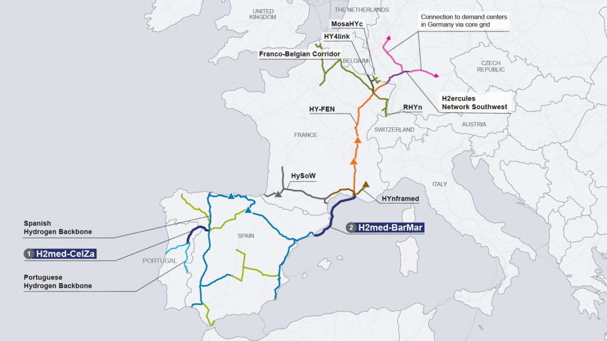Al conectar las redes troncales nacionales de hidrógeno que los participantes en el proyecto H2med pretenden completar en 2032, se creará un corredor de energía verde desde el sudoeste al noroeste de Europa.
