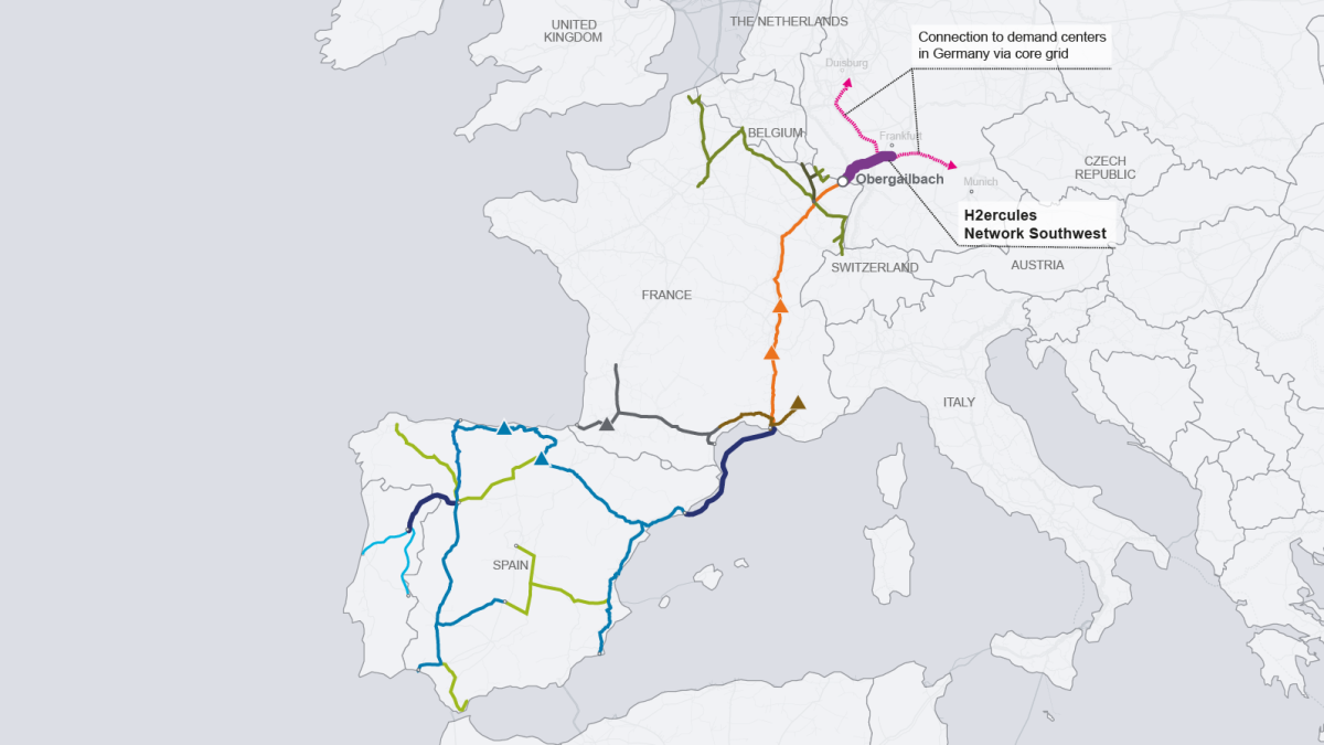La red H2ercules tendrá una longitud de más de 2.000 km en 2032. Junto con las redes adicionales de la región del Ruhr, las interconexiones con Noruega y los Países Bajos, OGE también desarrollará opciones de importación desde Francia y la República Checa. Esta infraestructura se convertirá en una red troncal de hidrógeno en el oeste y el sur de Alemania y llegará a importantes centros de consumo.